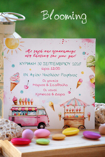 Προσκλητηρια βαπτισης ζαχαροπλαστειο παγωτο patisserie