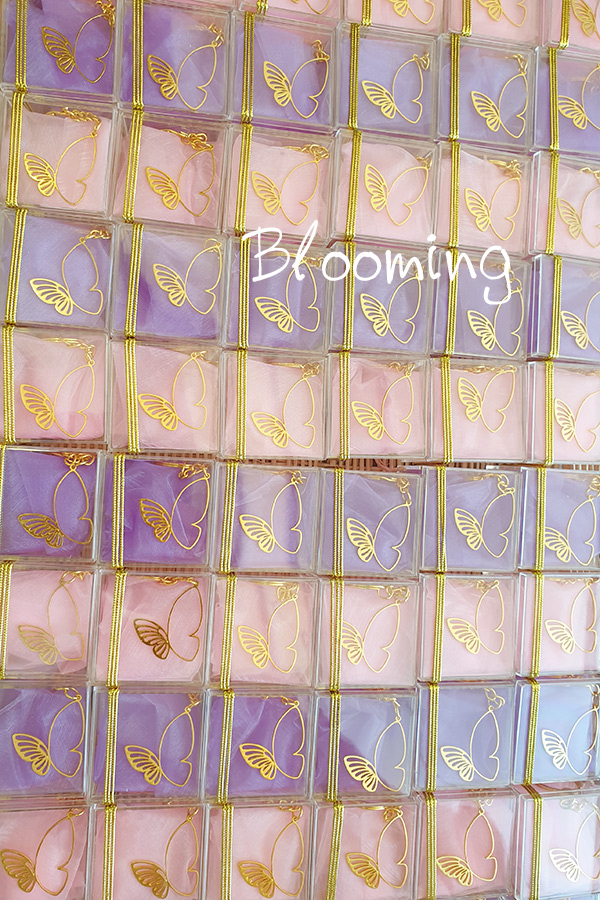Ολοκληρωμένη μπομπονιέρα κουτί πλεξιγκλάς 5.5cm x 5.5cm x 4.5cm με μπρελόκ πεταλούδα.